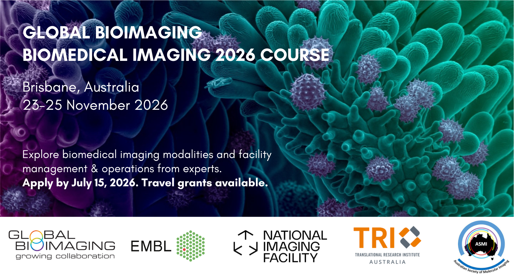 Global BioImaging BioImedical Imaging 2026 Course is a course jointly organized by Global BioImaging, its partner organization National Imaging Facility (NIF), and Australian Society of Molecular Imaging (ASMI).