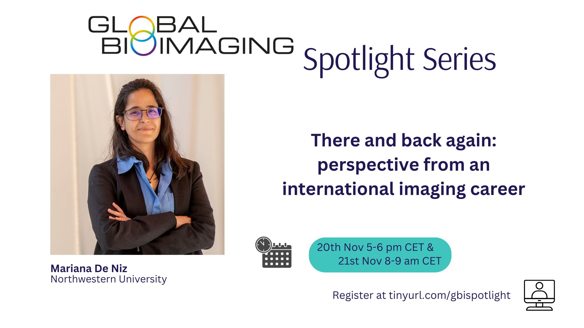 We are excited to welcome Mariana De Niz to our next Spotlight Seminar on Career Paths for Imaging Scientists! In her talk, There and Back Again: Perspective from an International Imaging Career, Mariana will share insights from her global journey as an imaging scientist, highlighting regional differences in imaging work, the value of international networks, and how seemingly small initiatives can create wide-reaching impacts across the scientific community.
